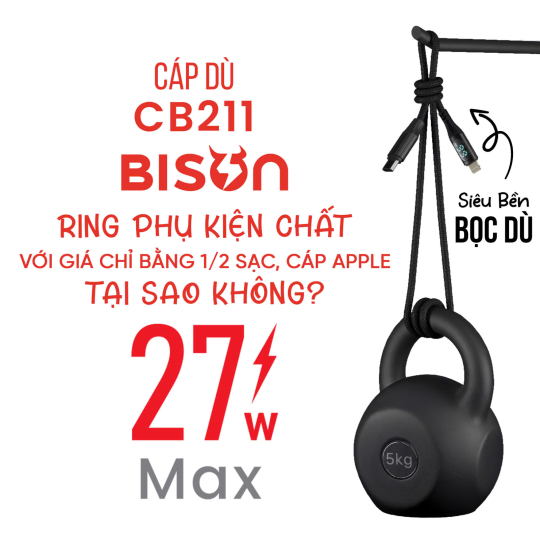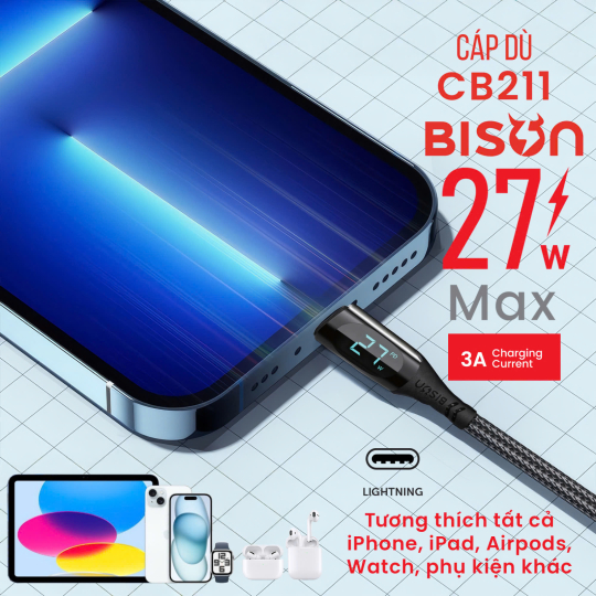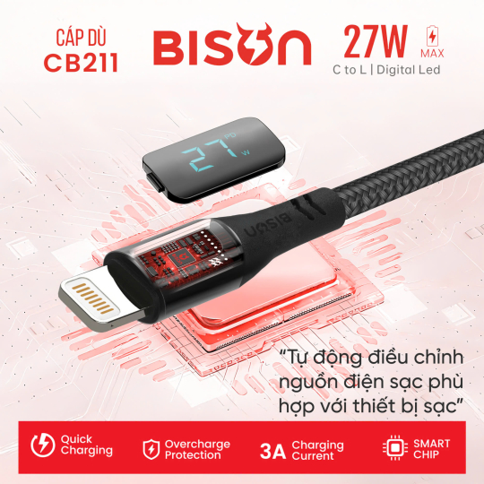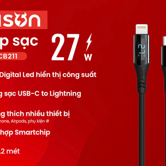 Cáp sạc nhanh Bison CB211 là lựa chọn lý tưởng cho người dùng iPhone/iPad cần một giải pháp sạc nhanh, bền bỉ và an toàn. Từ thiết kế thông minh với màn hình LED, chất liệu cao cấp, đến khả năng tương thích rộng rãi – CB211 xứng đáng trở thành phụ kiện không thể thiếu trong balo công nghệ của bạn.